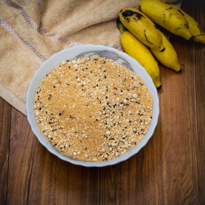 Avalose Podi is a nutritious mix of roasted rice flour, grated coconut, and cumin seeds handcrafted in traditional Kerala style. A healthy, filling snack that's easy to digest and full of natural goodness. A light and tasty evening snack perfect with bananas.
